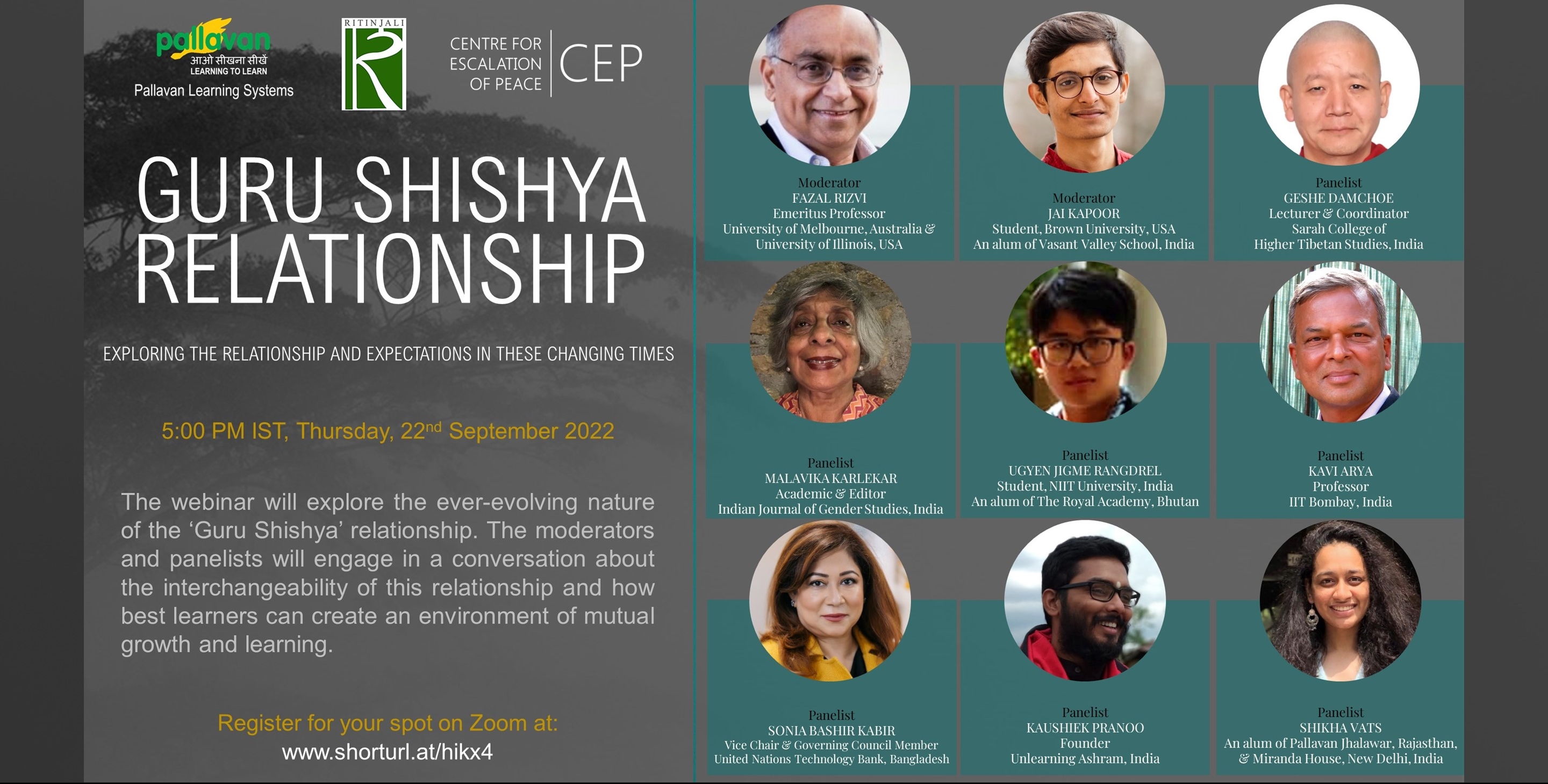This 9th Webinar organised by Pallavan Learning Systems, in association with Ritinjali and Centre for Escalation of Peace, explored the ever-evolving nature of the ‘Guru Shishya’ relationship. The ‘Guru -Shishya’ relationship has undergone significant changes over the course of time. With every major revolution, be it agrarian, industrial, scientific or technological, we are constantly exploring the ever-changing facets of this ‘Guru Shishya’ relationship. Since the breakout of COVID-19 pandemic, this relationship has experienced many challenges. Learnings from these challenges define a whole new spectrum of knowledge-transfer and understanding. One major shift has been the advent of online platforms and the engagement of learning being primarily online without any in-person interaction between teachers and students.
