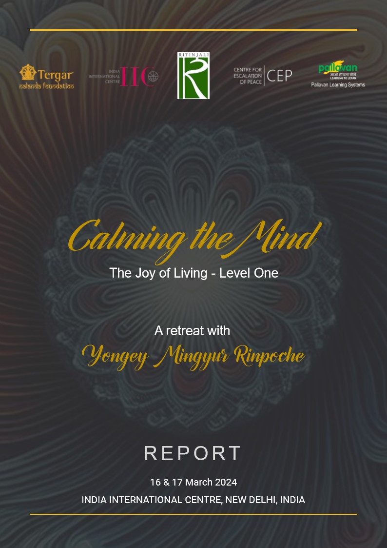 On the 16th and 17th of March 2024, Ritinjali and the Centre for Escalation of Peace, in collaboration with the India International Centre, Nalanda Foundation, and Pallavan Learning Systems, came together to host a transformative retreat with Yongey Mingyur Rinpoche on CALMING THE MIND: THE JOY OF LIVING - Level One.
