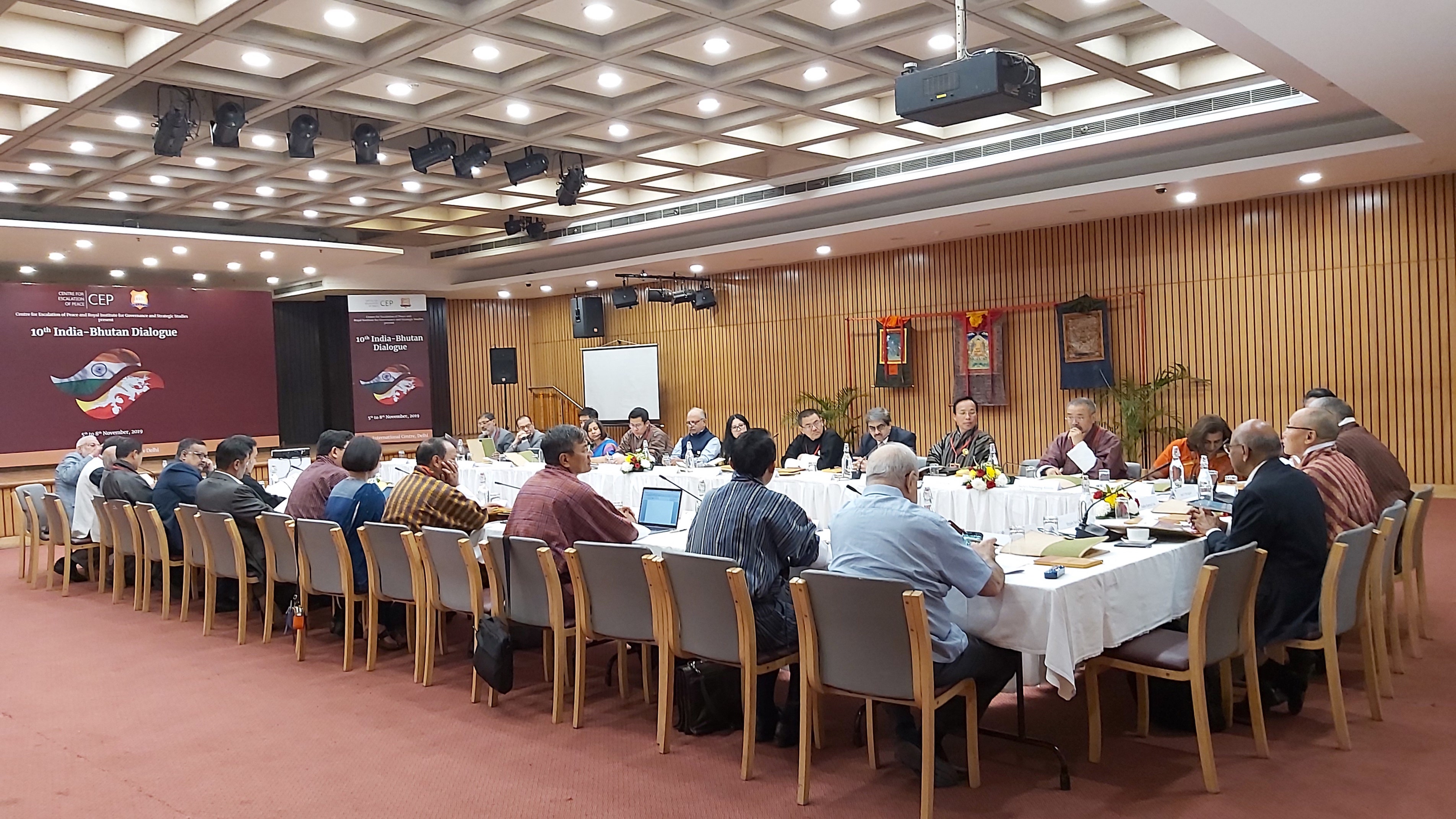 The tenth round of the India-Bhutan Dialogue was convened by the Centre for Escalation of Peace in collaboration with the Royal Institute of Governance & Strategic Studies (RIGSS) on 6 and 7 November 2019. The focused areas of discussions were on People to People Exchange, Economic Cooperation, Trans-Boundary Cooperation, and Cooperation in the field of Science and Technology. The Welcome Dinner was hosted in honour of the two delegations and their contributions to the Dialogue process by His Excellency, the Ambassador of Bhutan to India. The Ministry of External Affairs, India organized a lunch in honour of the two delegations.