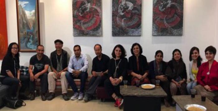 The five artists from Bhutan were Gyempo Wangchuk, Ashik Pradhan, Choney Pelzang, Pema Gyeltshen, and Tshewang Darjay. The five artists from India were Manisha Gera Baswani, Pooja Iranna, Kavita Nayar, Venkat Raman Singh Shyam and Mahalaxmi Karn.