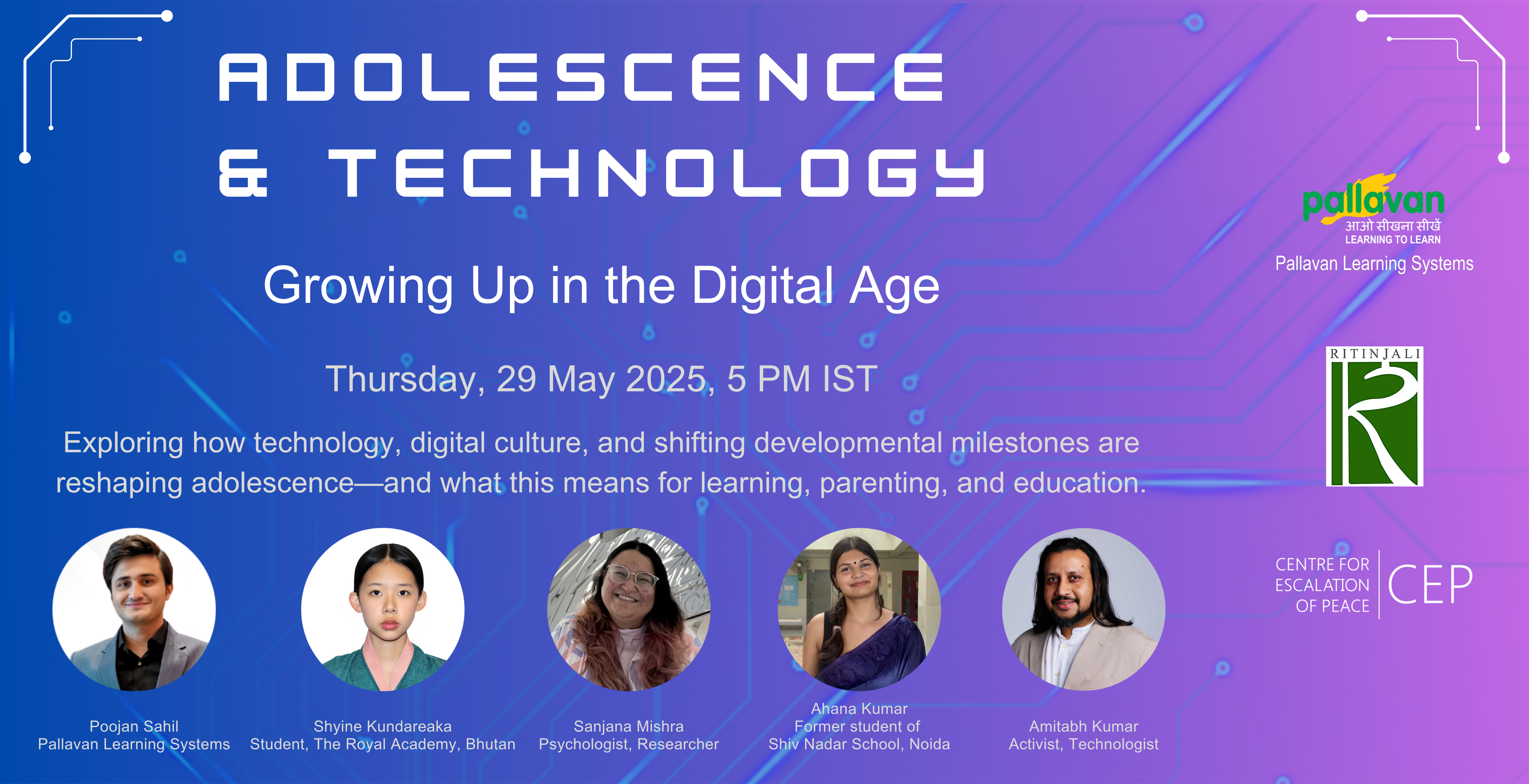 On May 29th, 2025, Pallavan Learning Systems hosted its 19th webinar on the theme, ‘Adolescence and Technology: Growing Up in the Digital Age' in association with Ritinjali and Centre for Escalation of Peace.
